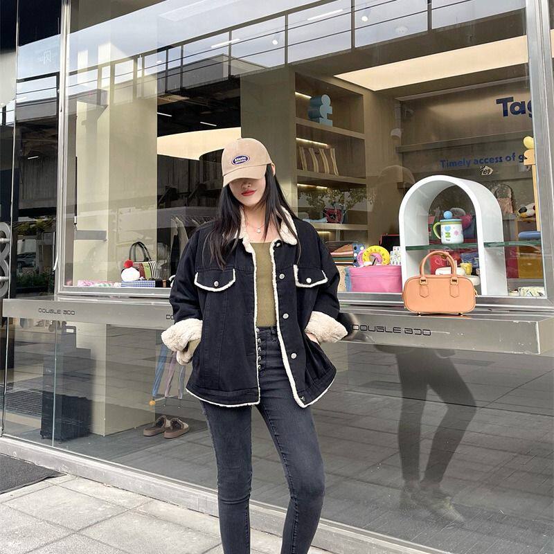 - 牛仔外套女羊羔毛