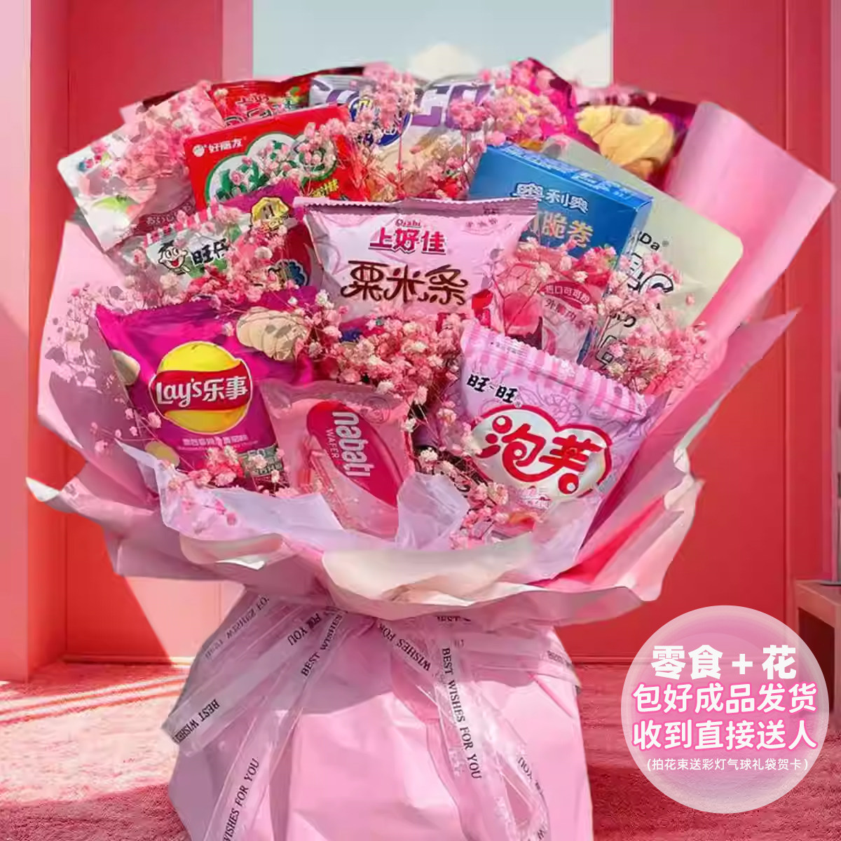 零食花束半成品包装diy材料全套节生日鲜花零食香烟创意礼物花壳