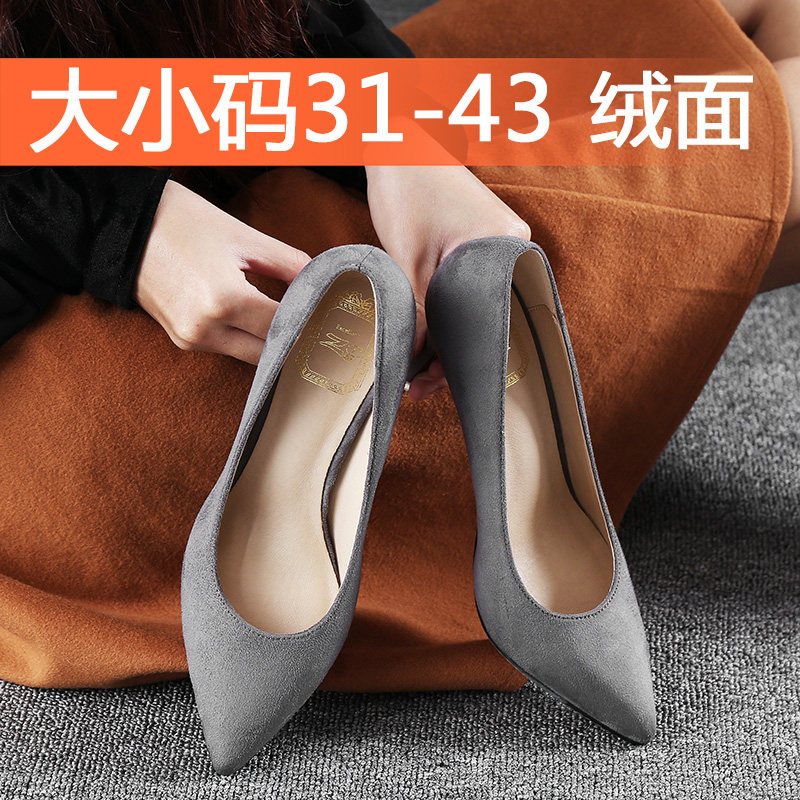 大码高跟鞋春秋绒面细跟尖头法式职业41一43鞋子女新款灰色OL礼仪
