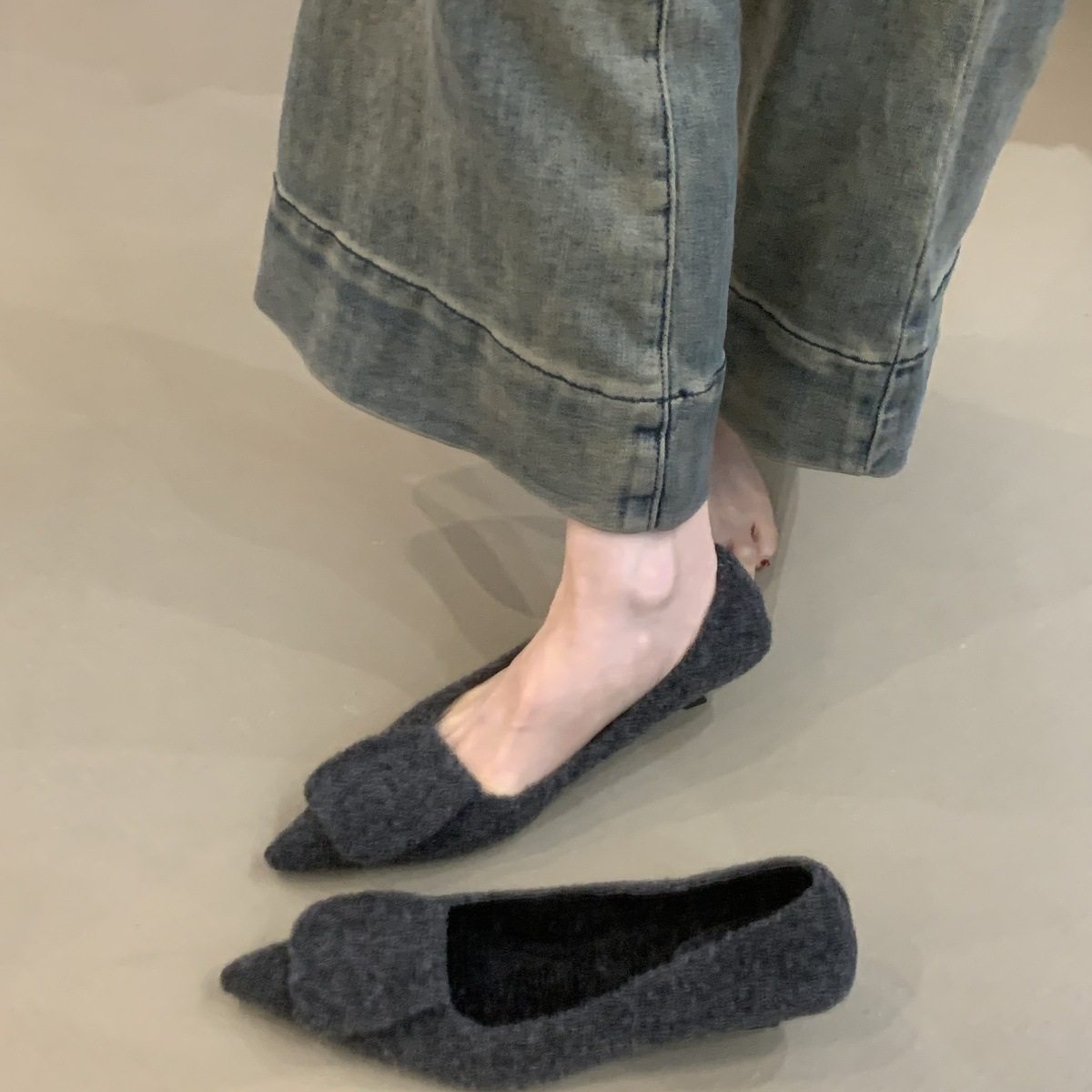 法式灰色高跟鞋女鞋2025年秋冬新款复古尖头浅口加绒通勤单鞋