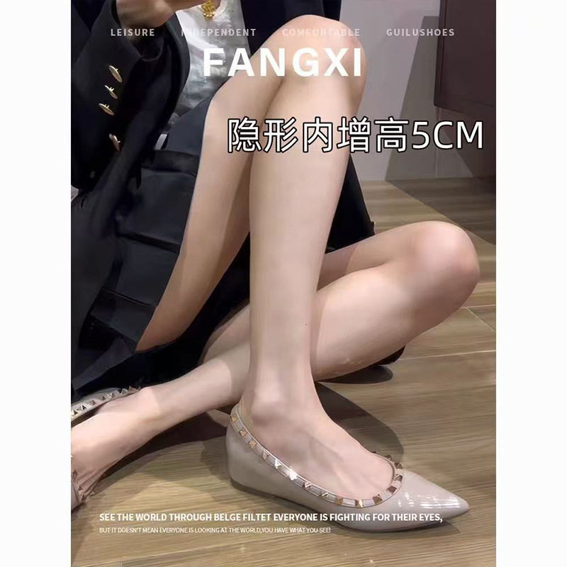 裸灰色高跟鞋女2024浅口铆w钉平底隐形内增高小个子不累脚单鞋女