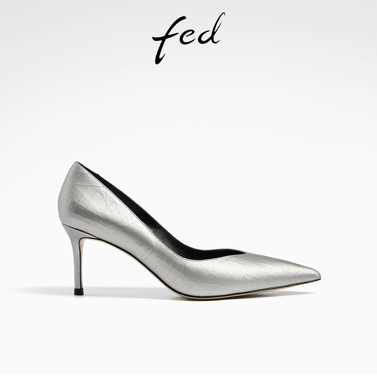 fed灰色高跟鞋春季新款女鞋金属牛皮单鞋尖头礼服鞋女D0306-YA290