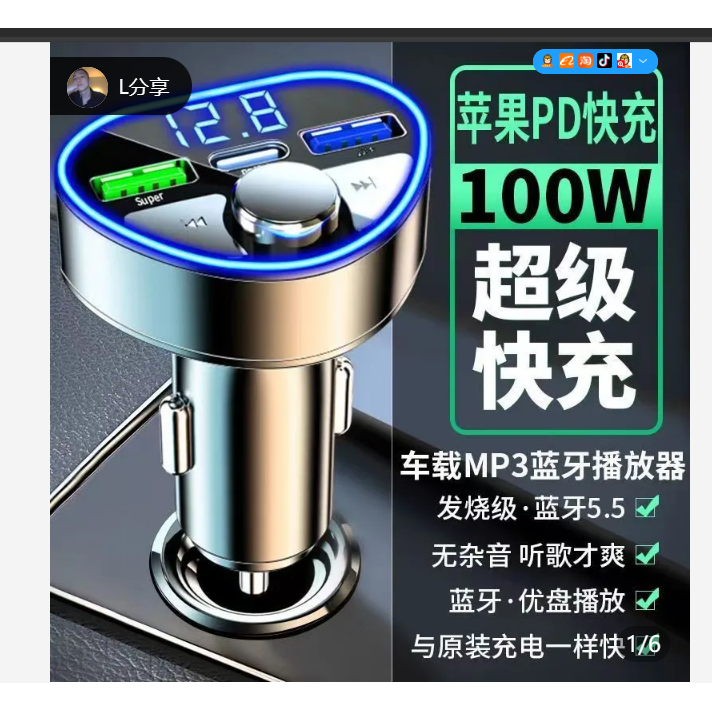 无损音质车载蓝牙接收器 mp3播放器点烟器车载充电器PD30W快充