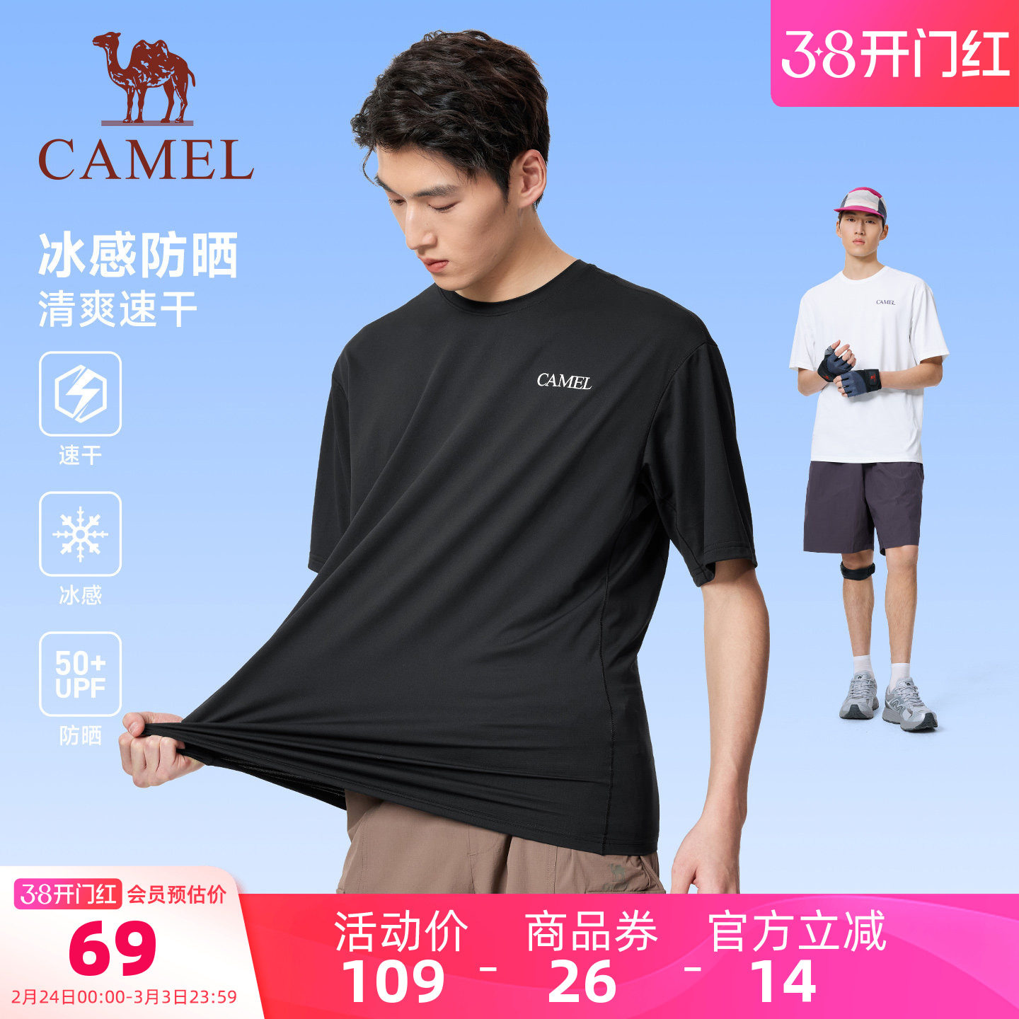 骆驼速干T神运动短袖男26夏季新款情侣冰感防晒户外跑步速干衣T恤
