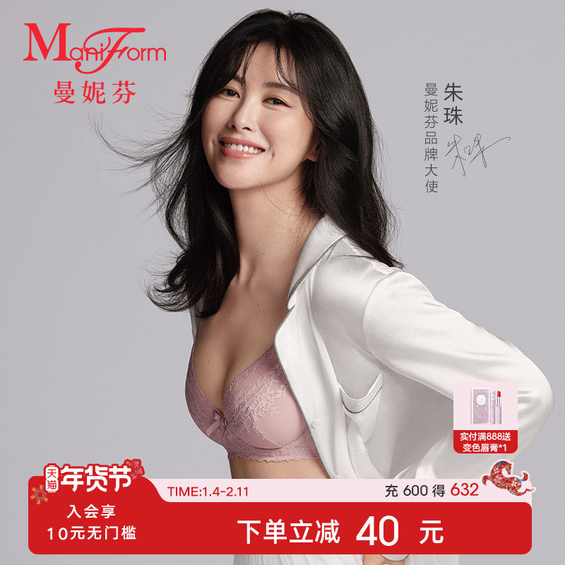 朱珠同款|曼妮芬大胸显小文胸性感法式蕾丝内衣女薄款单层围胸罩