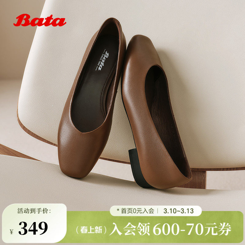 Bata浅口单鞋女2026春季新款时尚简约羊皮软底低跟单鞋AOP22AQ6