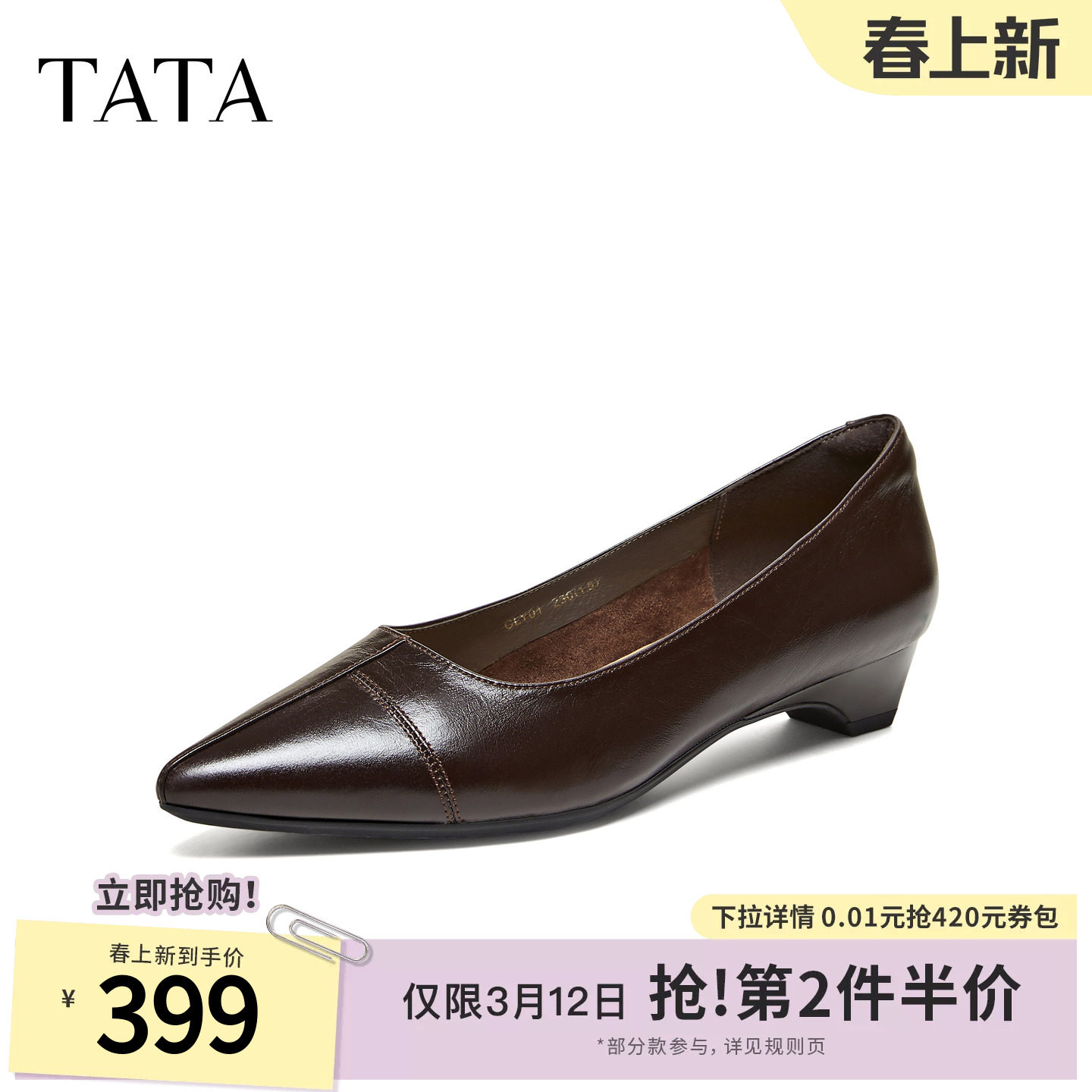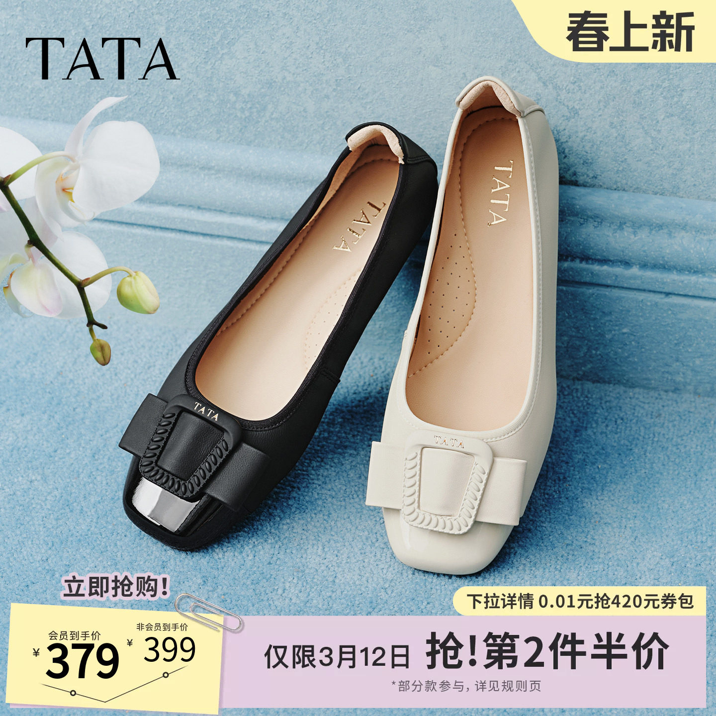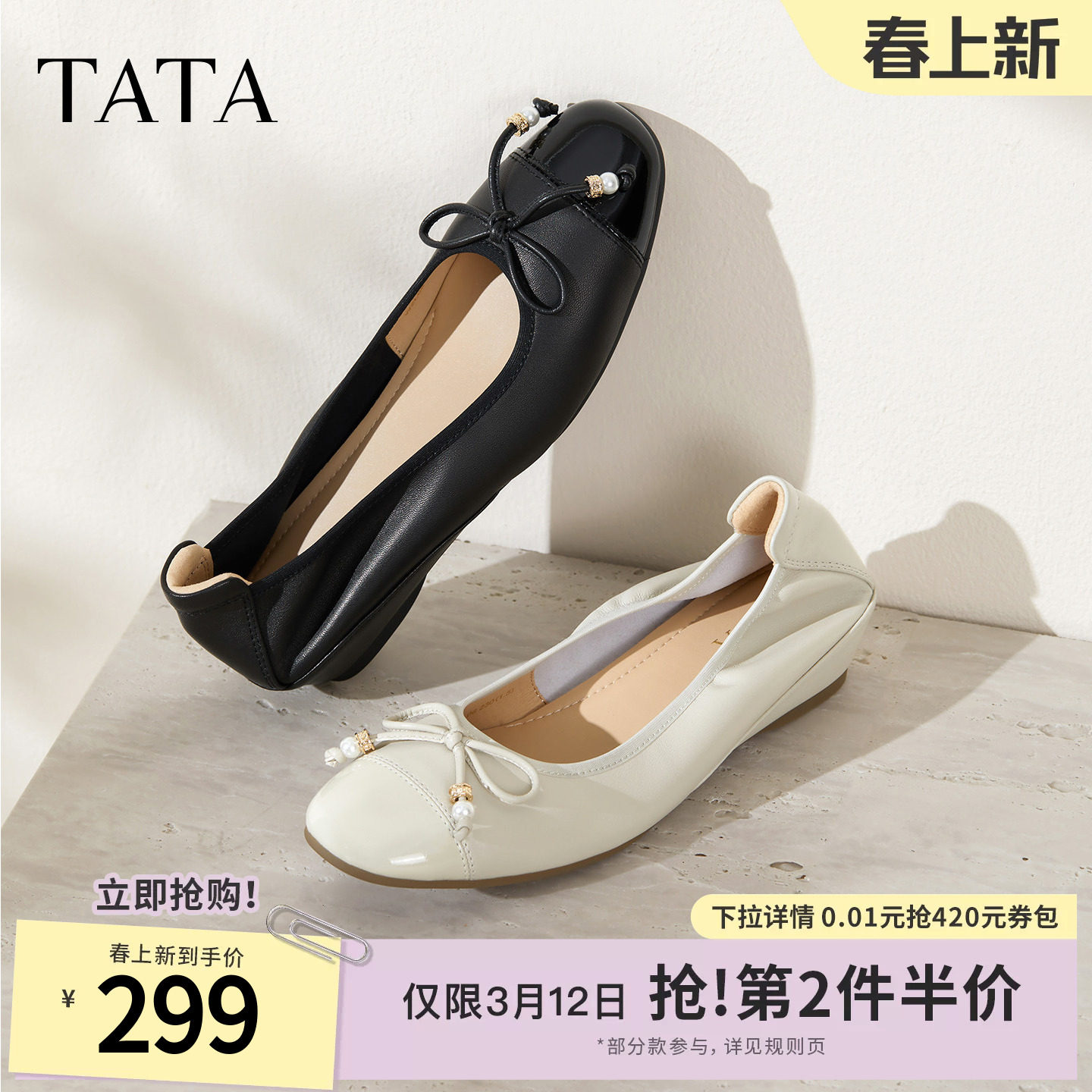 TATA他她女鞋2026春季新款浅口单鞋时尚百搭女低平跟鞋子UUY02AQ6