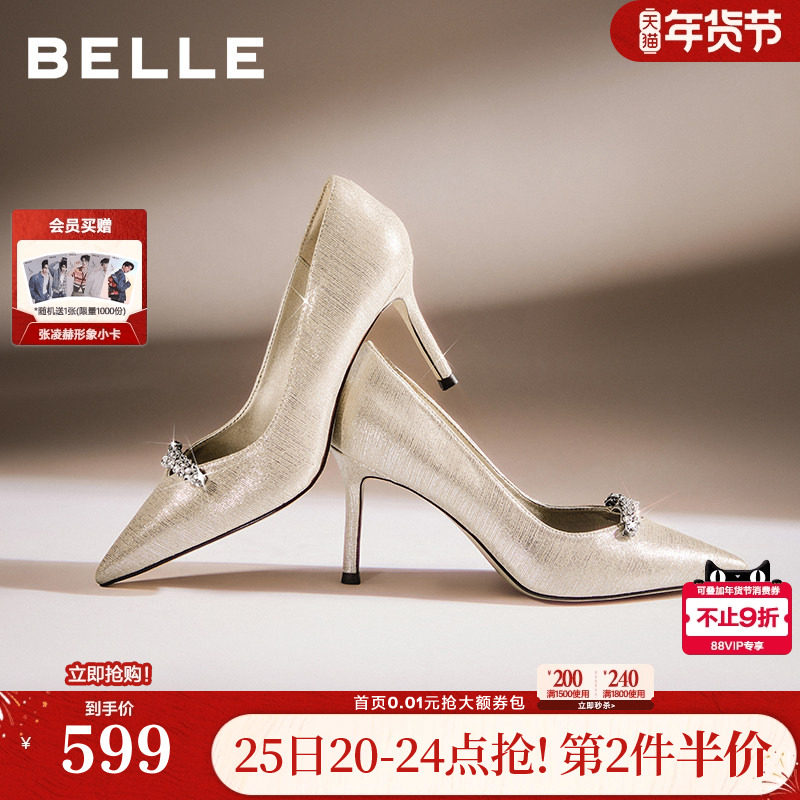 百丽细高跟单鞋女2026新款春季通勤婚鞋宴会年会浅口单鞋子BDAY4A