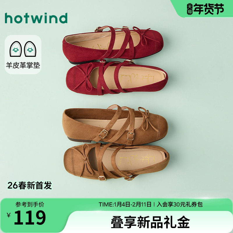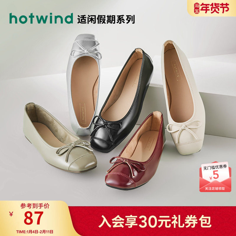热风女鞋26年春新款女士时尚温柔蝴蝶结休闲鞋套脚浅口纯色单鞋女