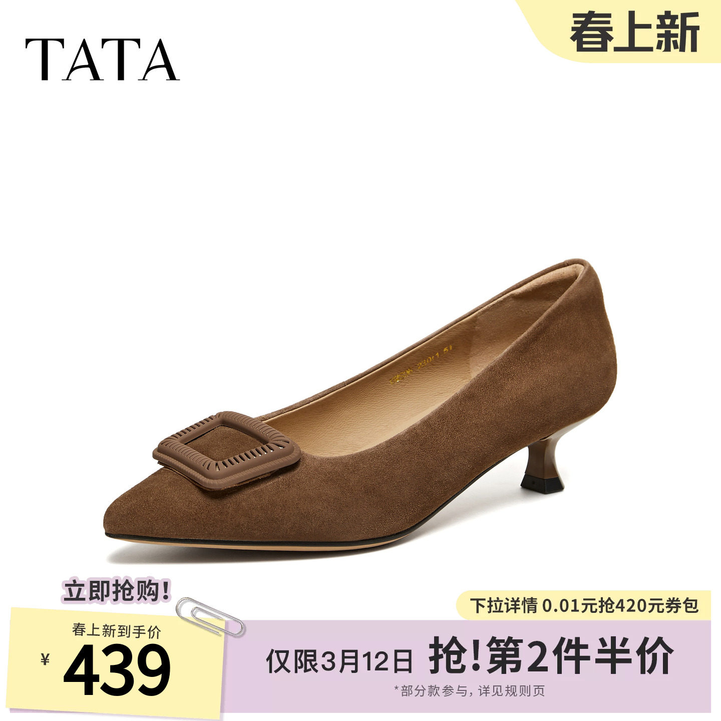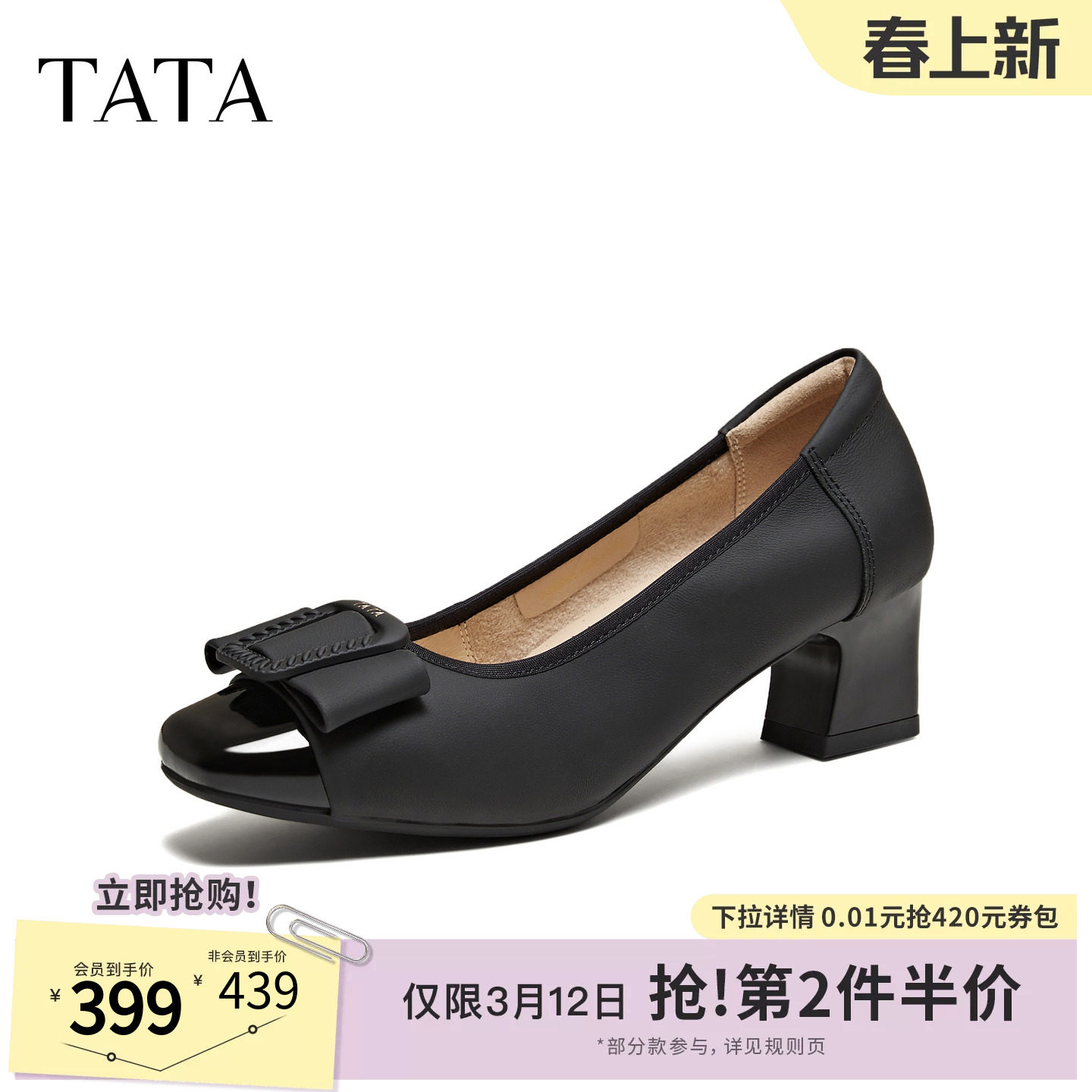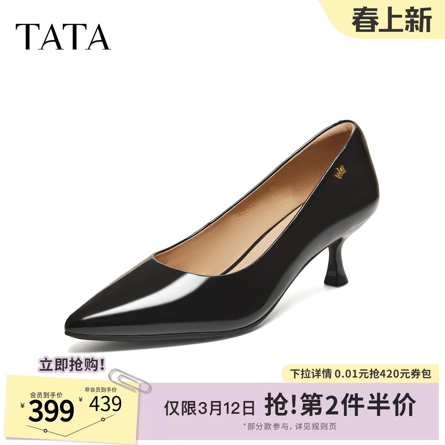 TATA他她女鞋2026春季新款时尚百搭浅口单鞋商务高跟鞋UMS06AQ6