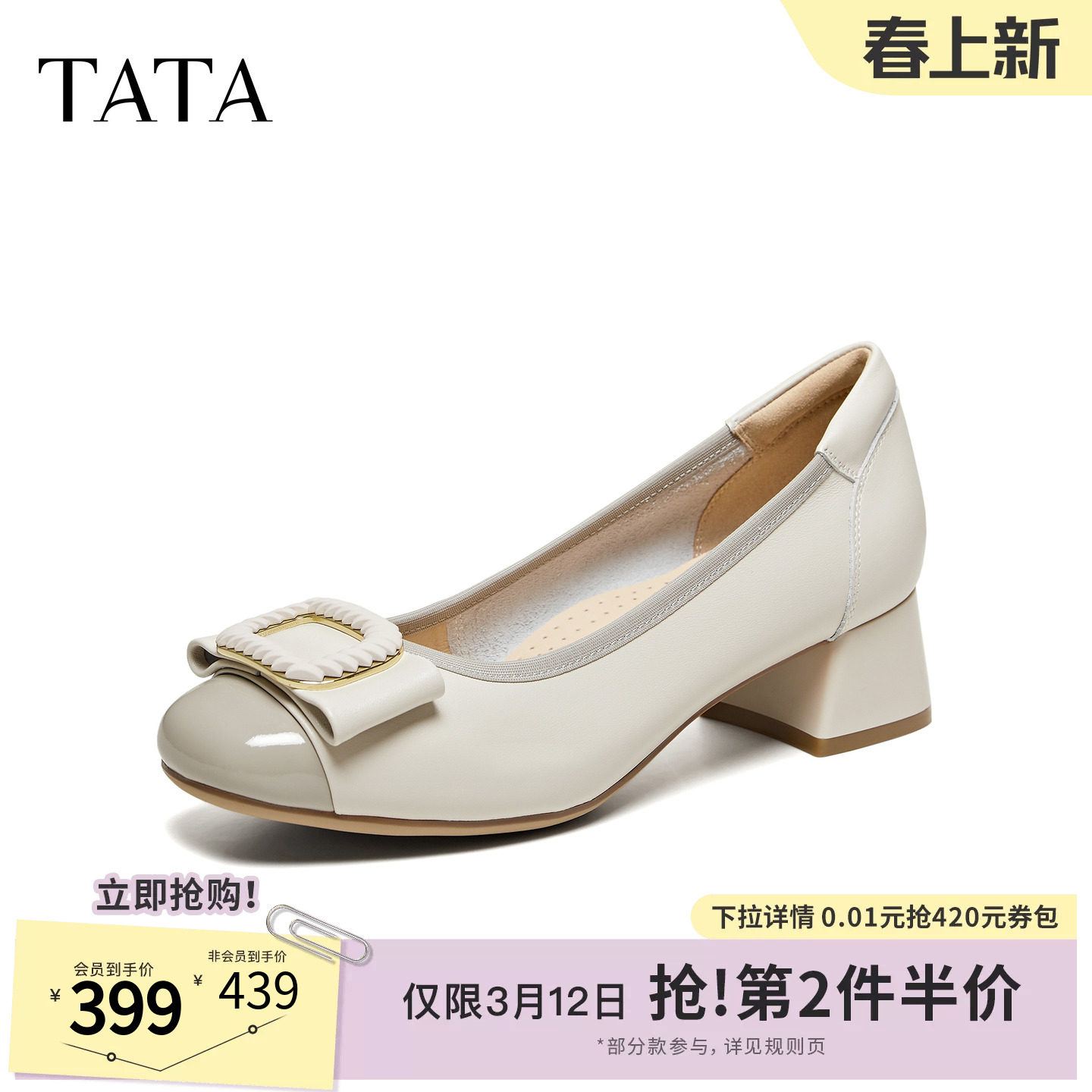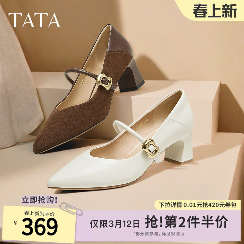 TATA他她时尚低跟浅口单鞋女尖头白色通勤鞋女2026春新款CLY01AQ6