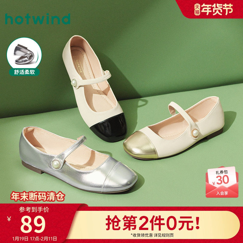 热风浅口单鞋女2025年秋季新款法式方头平底单鞋百搭玛丽珍鞋女鞋