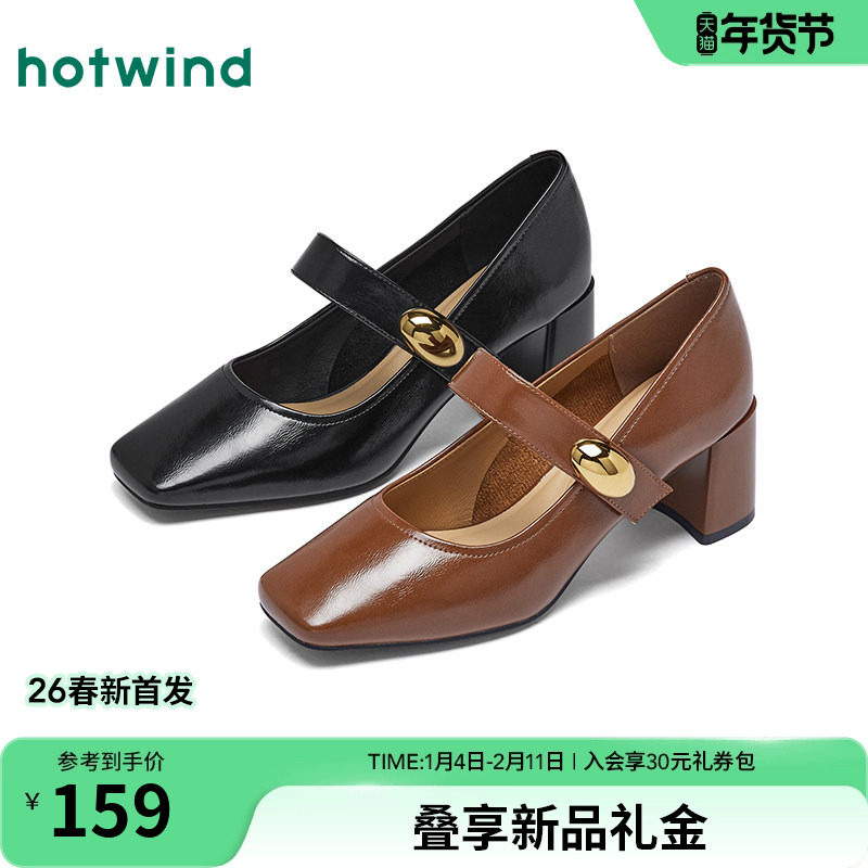 热风复古玛丽珍女鞋2026年春季新款法式方头高跟单鞋浅口女鞋子