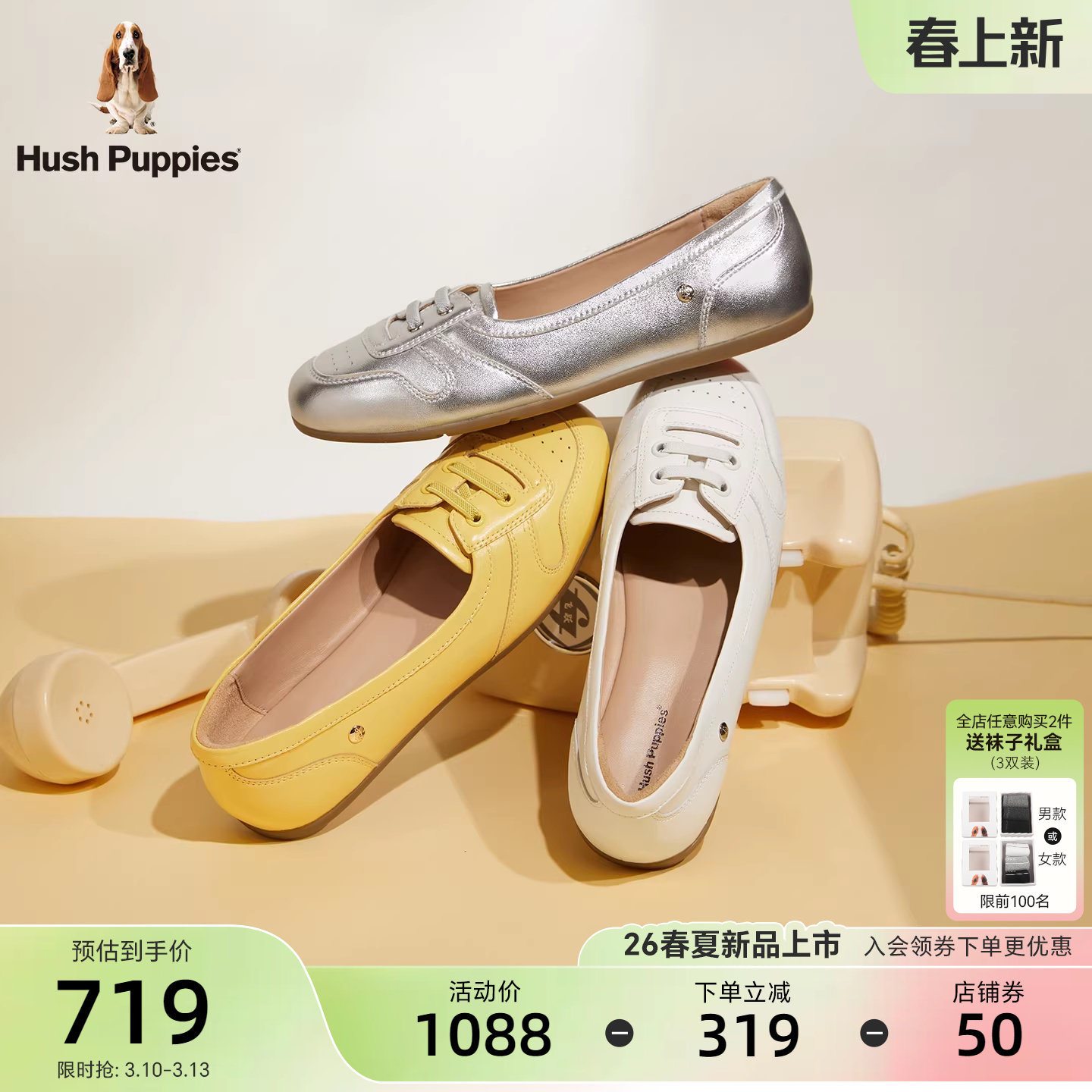 暇步士浅口单鞋女26春新款免系带真皮一脚蹬休闲百搭舒适平底船鞋
