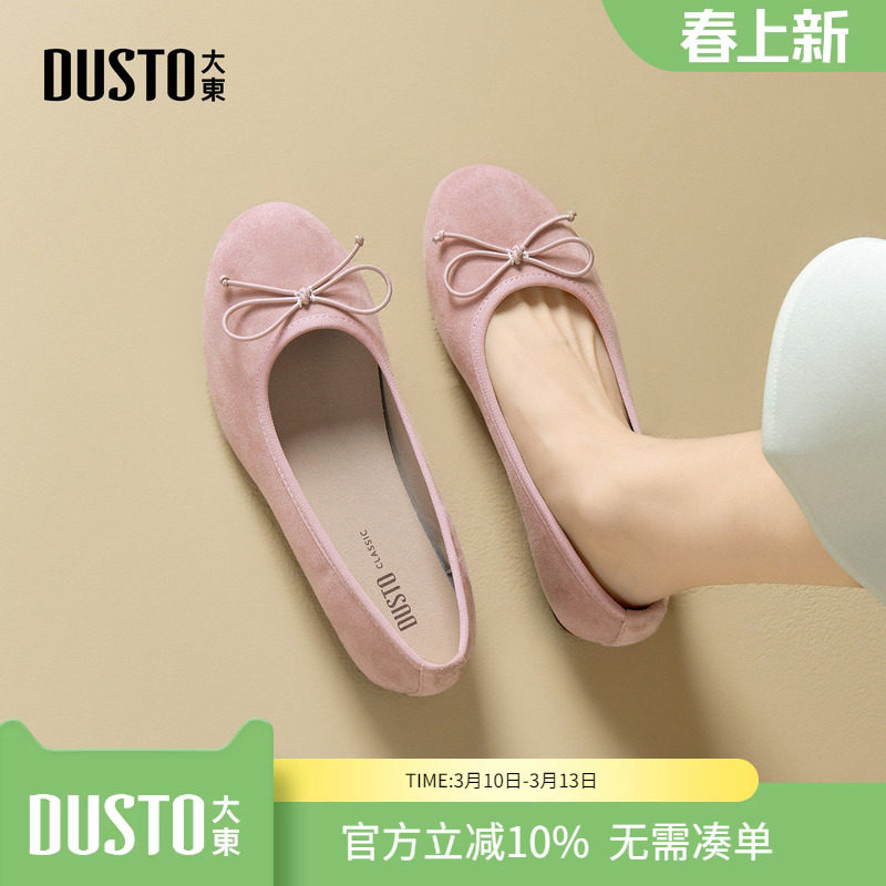 大东浅口鞋女鞋2026春季新款甜美低跟舒适软底蝴蝶结芭蕾风平底鞋
