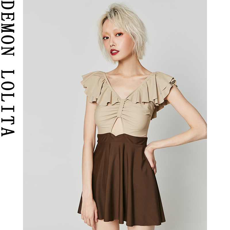 demonlolita旗舰店保守泳衣女夏泡温泉遮肚显瘦连体小胸游泳衣