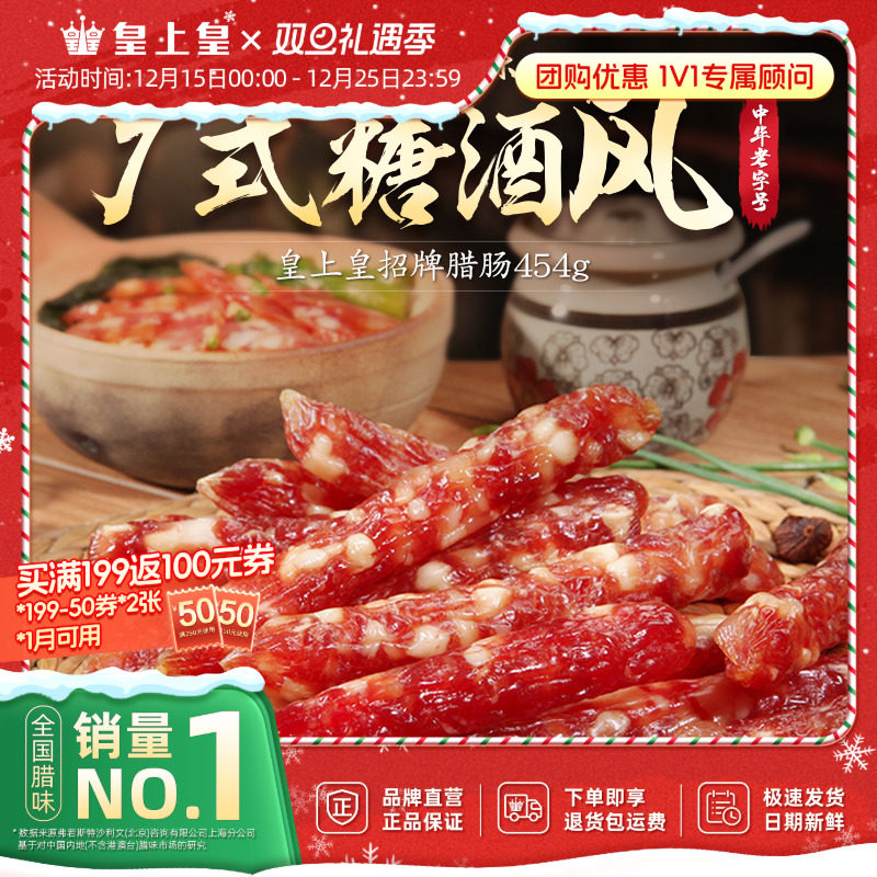 皇上皇招牌腊肠454g 三七肥瘦广式腊肠香肠腊肉粒肠糖酒风囤货