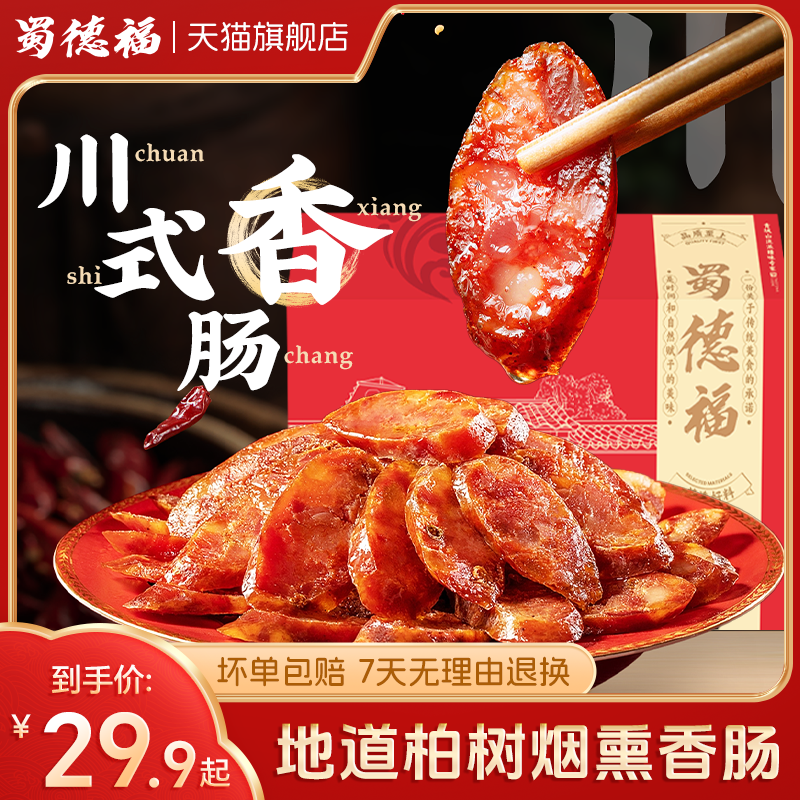 蜀德福四川麻辣五香重庆烟熏川味腊肠手工排骨香肠腊肉官方旗舰店
