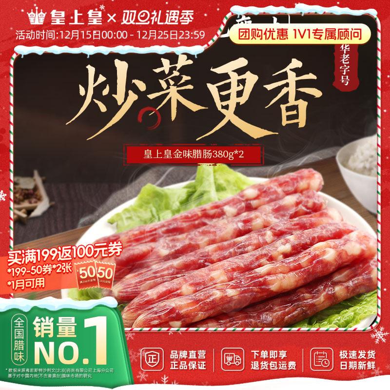 皇上皇金味腊肠380g*2包广式香肠腊肉甜腊味广州特产糖酒风囤货
