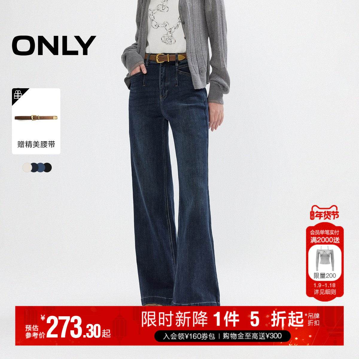 ONLY2025冬季新款立体剪裁设计小个子高腰长裤喇叭裤牛仔裤女