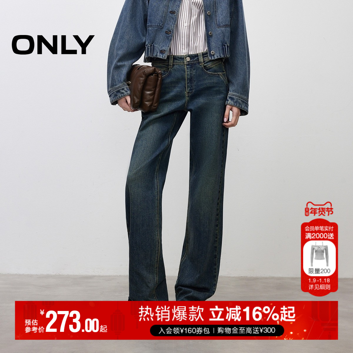 ONLY2026春季新款复古做旧裤线前移高腰显瘦长裤直筒裤牛仔裤女