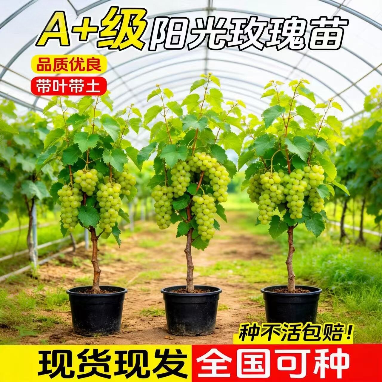正宗阳光玫瑰葡萄树苗巨峰寒香蜜南北方种植耐寒爬藤带土当年结果
