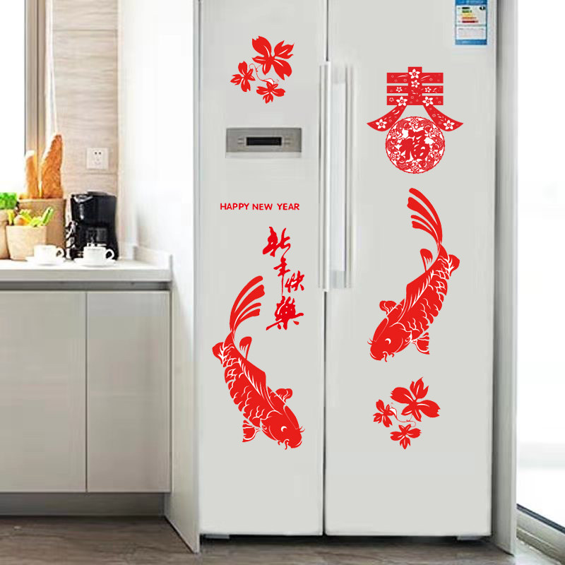 自粘冰箱贴纸厨房装饰贴画橱柜子布置冰箱装饰新年喜庆节日贴画纸
