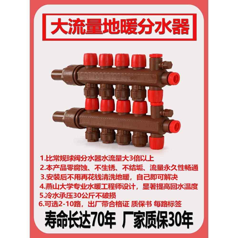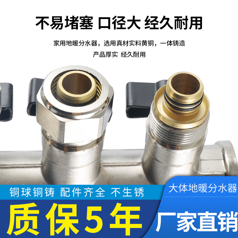 铜球地暖分水器大流量不锈钢 地热分水器放水阀暖气新型家用ppr