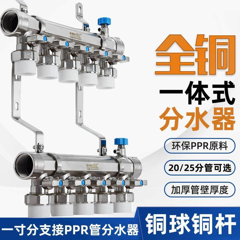 家装加厚全铜一体大流量地热分水器20地暖管全套1寸 可定制商标