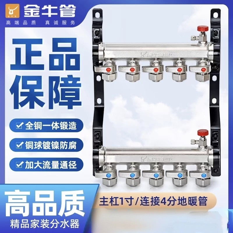 金牛大流量地暖分水器地暖家用地热分水器全铜一体分水器全套家装