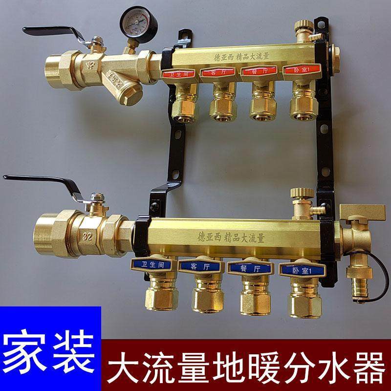 大流量地暖分水器地暖家用地热分水器全铜一体地暖管集分水器总成