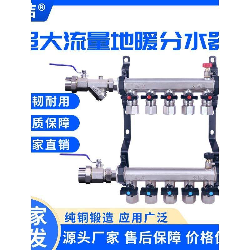 1寸地暖分水器大流量加厚全铜地热分水器家用大体分水器阀门套装
