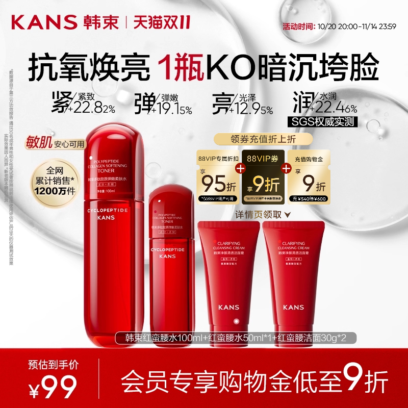 【双11立即抢购】韩束红蛮腰水乳护肤套装紧致淡纹提亮补水保湿