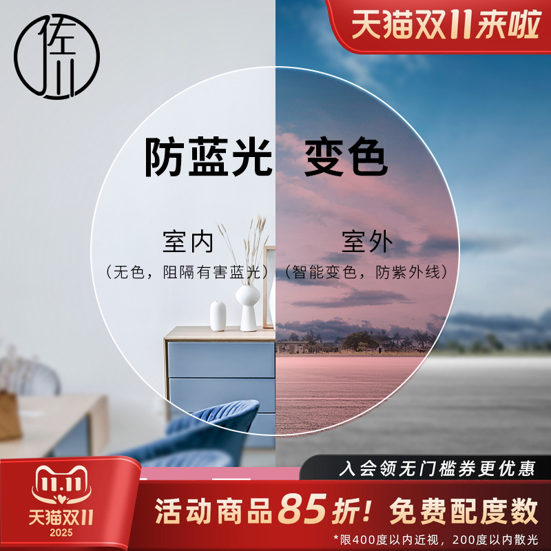 佐川变彩色防蓝光眼镜片树脂非球面超薄智能光感近视眼镜镜片定制