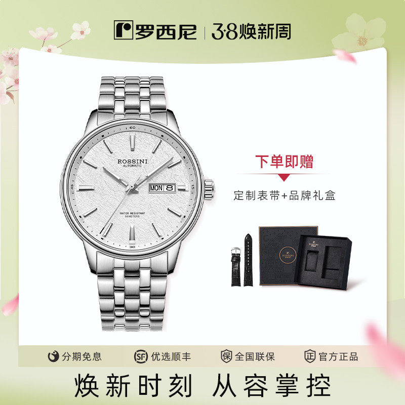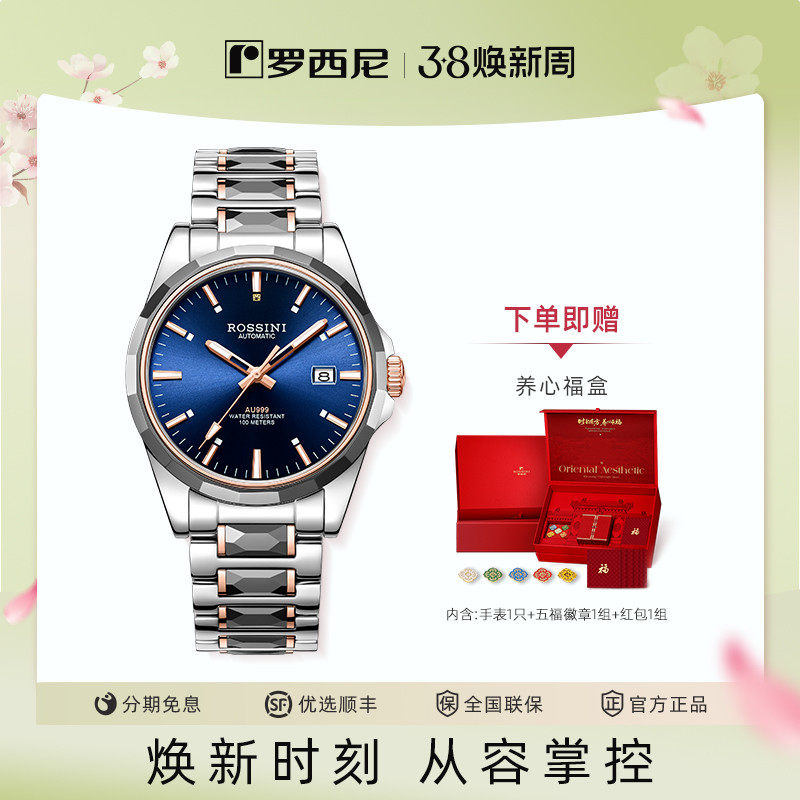 【AU999花钉】罗西尼手表男钨钢系列时尚机械表100米防水夜光男表