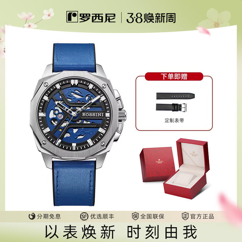 罗西尼手表男钨钢系列官方正品男士机械表防水夜光镂空男表送老公