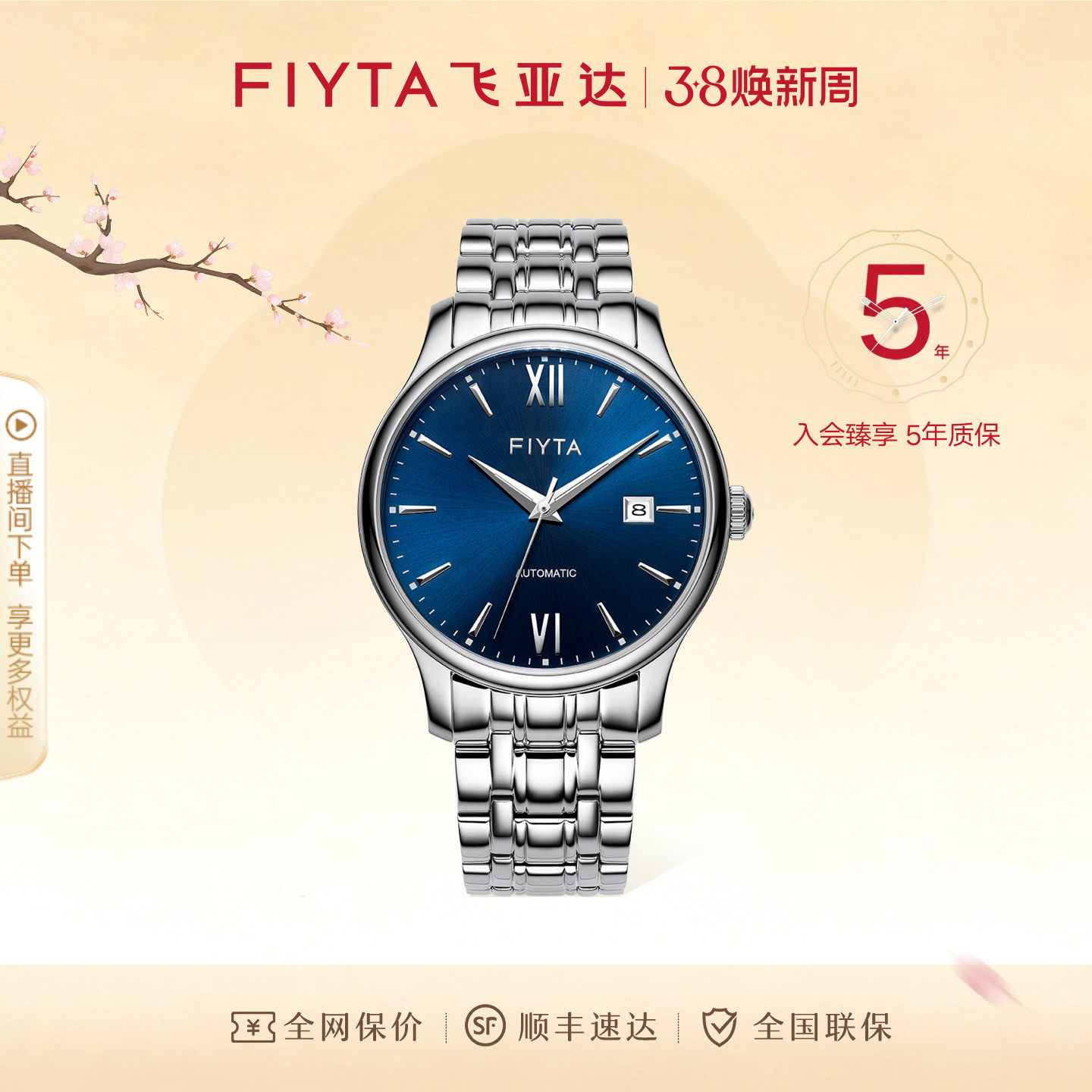 飞亚达男表机械表时尚潮流钢带防水自动手表男款送爸爸送男友礼物
