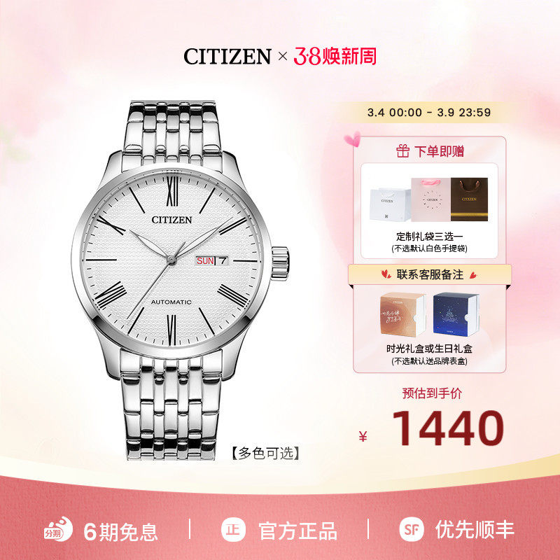 【商场同款】西铁城官旗自动机械防水商务休闲钢带男表NH8350