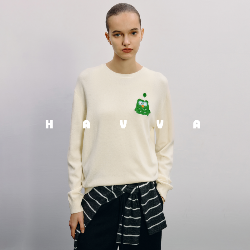 HAVVA慵懒感宽松针织衫舒适好穿女士套头打底毛衣2025秋冬M3-0434
