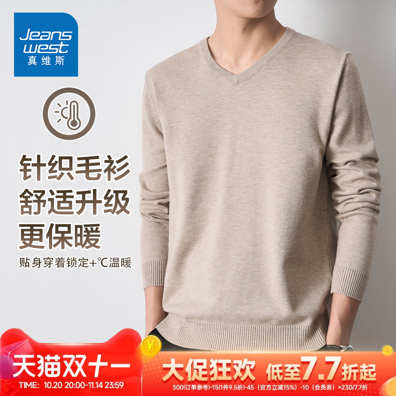 KP真维斯针织毛衫男士秋季V领内搭纯色百搭秋冬款保暖打底毛衣男