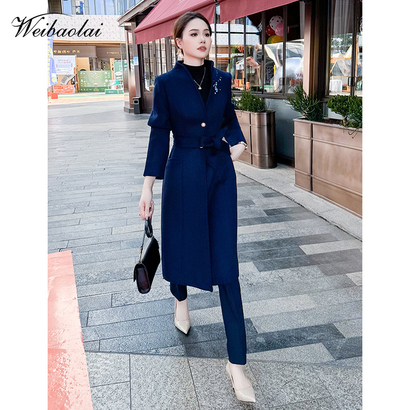 职业装毛呢大衣女中长西装款秋冬加厚呢子外套酒店银行工装工作服