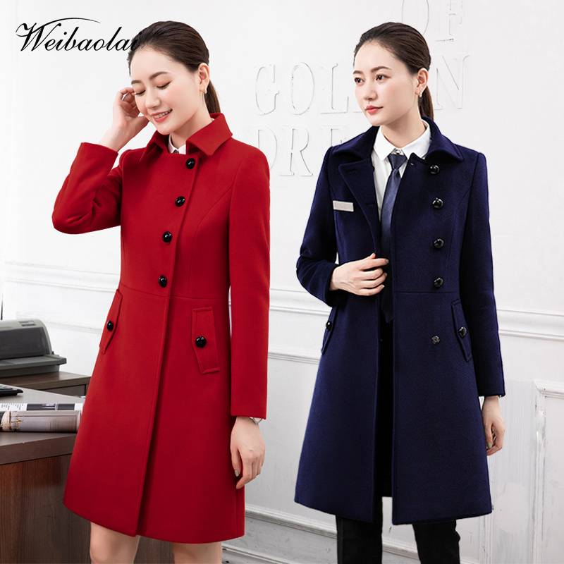 2021职业大衣女冬中长售楼部空姐酒店前台金店工作服羊毛呢子外套