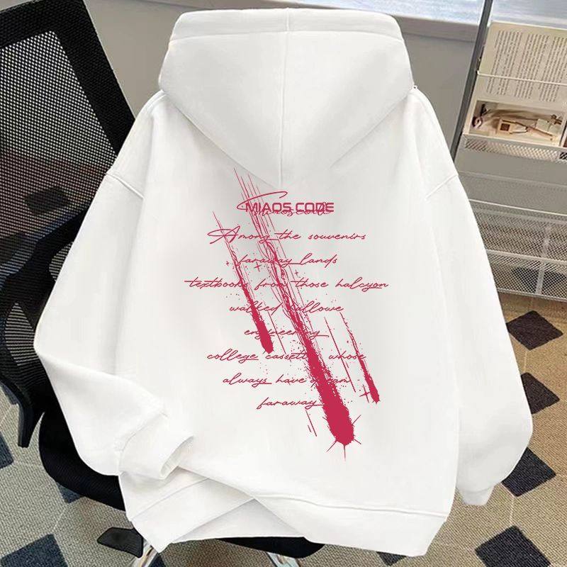 大码美式复古oversize连帽卫衣女韩版宽松加绒秋冬炸街连帽外套潮