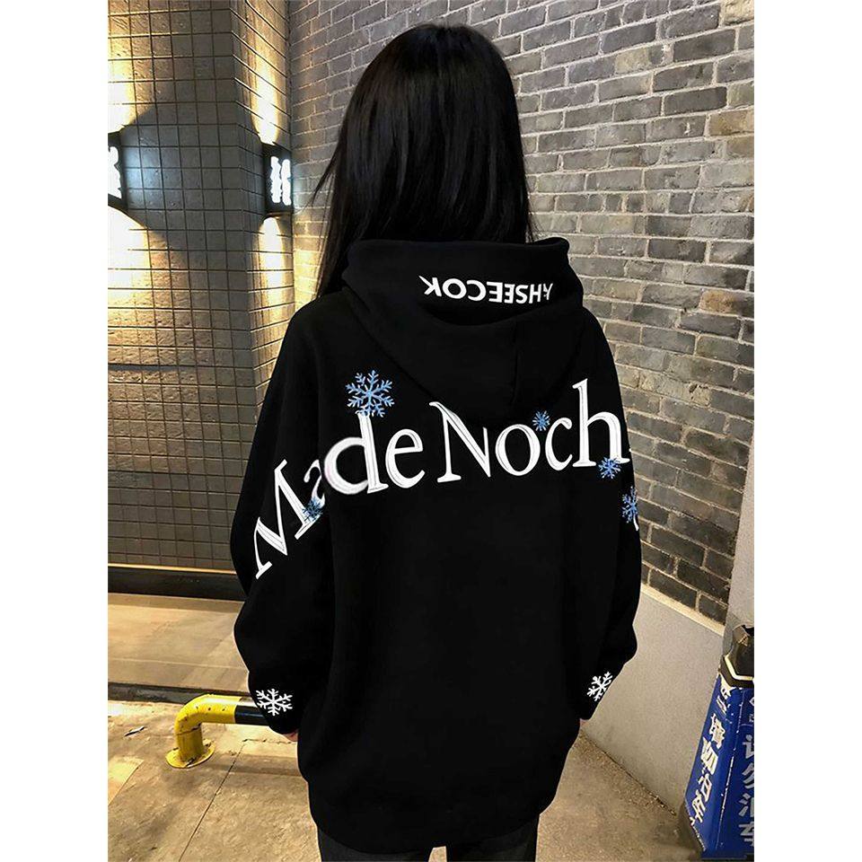 雪花字母刺绣oversize连帽卫衣女秋冬加绒重磅慵懒风潮牌情侣上衣