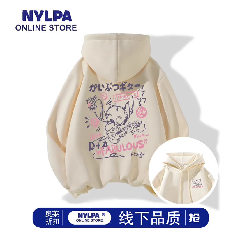 NYLPA新款韩系ins独特别致可爱史迪仔卫衣女秋冬oversize连帽卫衣