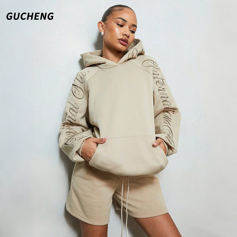 古丞GUCHENG 美式休闲风oversize连帽卫衣女宽松套头字母印花上衣