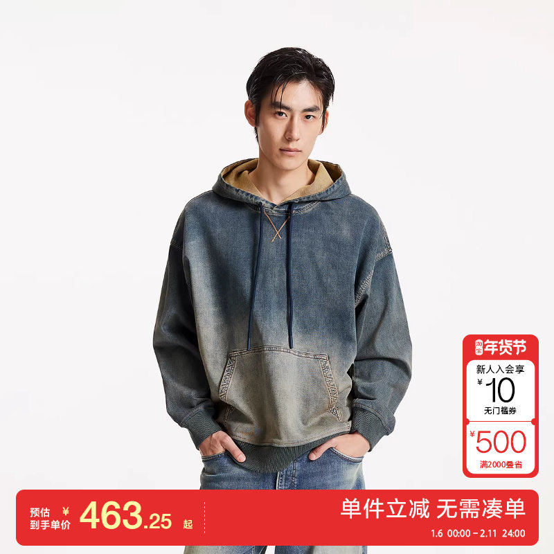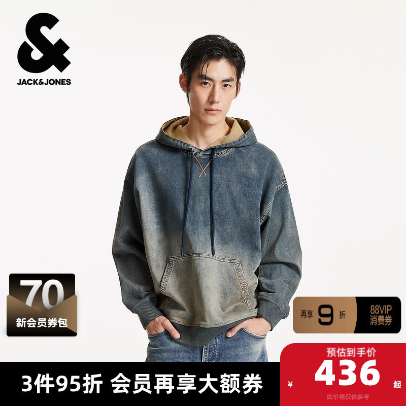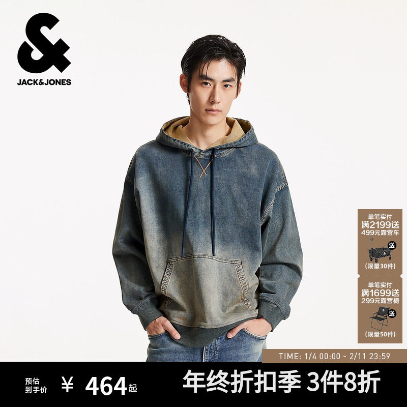 绫致杰克琼斯男装秋冬新款时尚潮流做旧水洗oversize连帽卫衣