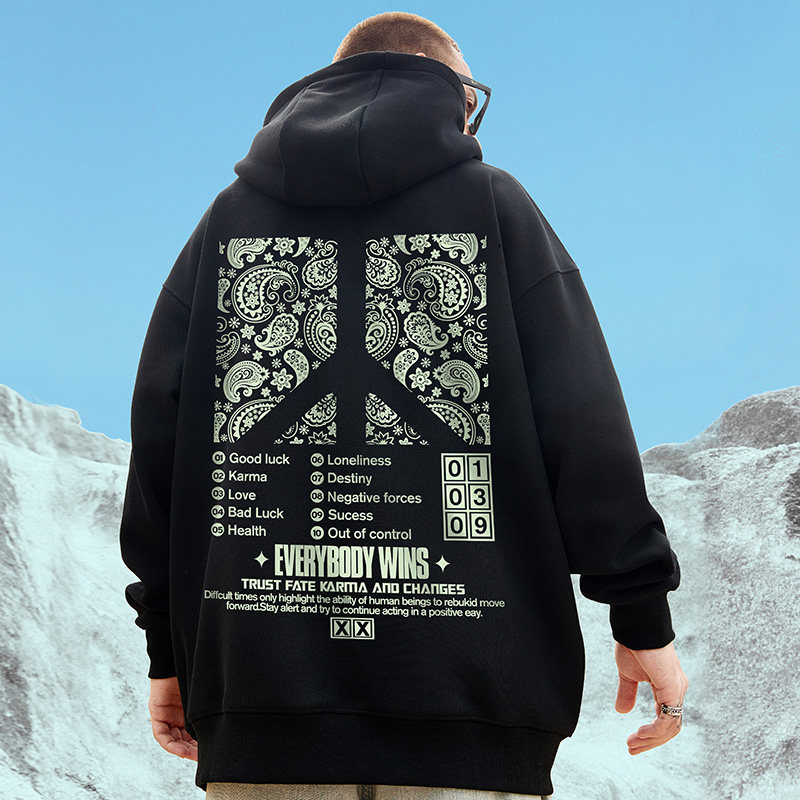 欧美嘻哈宽松oversize连帽卫衣男秋冬加绒加厚百搭印花复古上衣服
