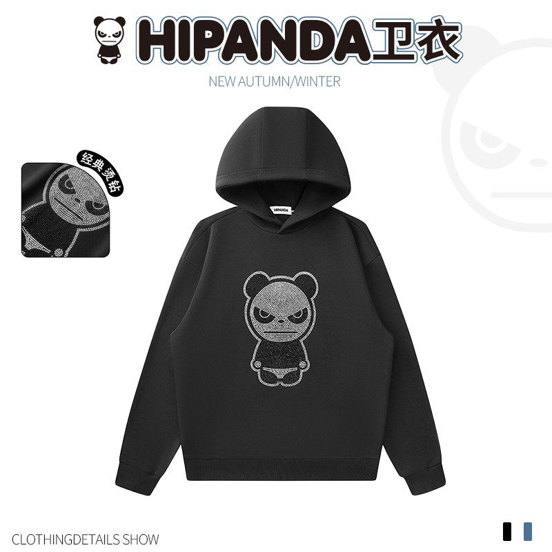 Hipanda你好熊猫潮牌经典烫钻oversize连帽卫衣男女2025秋季新款