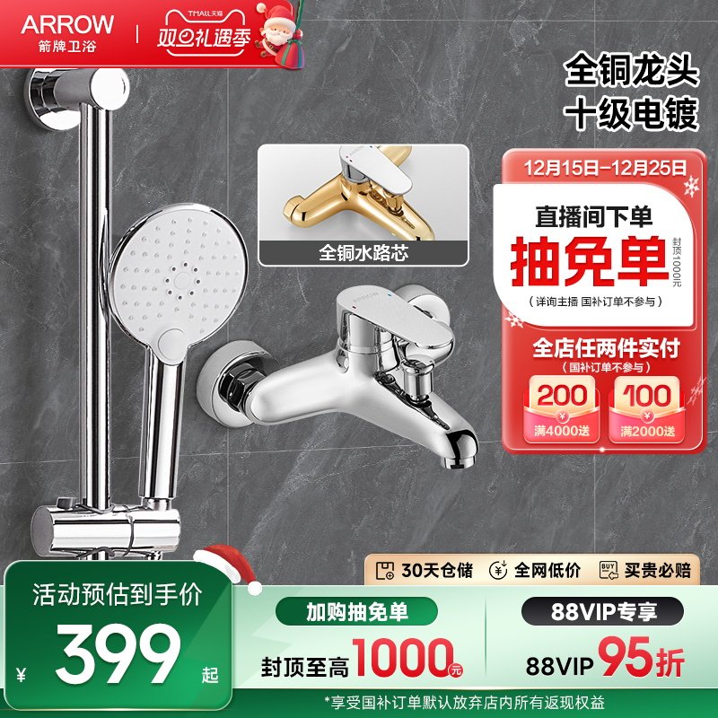 【热销】箭牌卫浴简易淋浴花洒套装浴缸无顶喷花洒家用淋浴室喷头